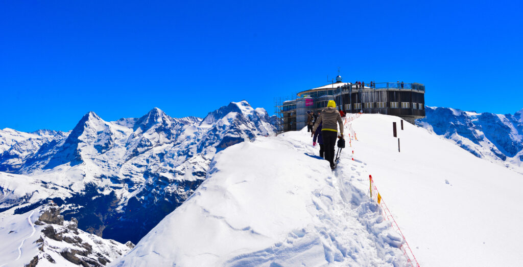 - Konkordiaplatz: The massive glacier junction below the Jungfraujoch visible on clear days from the Aletschhorn’s summit approaches — where the Jungfraufirn, Ewigschneefäld, and other glacier arms converge into a single vast ice river — is one of the great alpine spectacles. The Konkordiaplatz sits at approximately 2,700 m and was used as a base camp for the 1811 Jungfrau first ascent party who camped at the foot of the Aletschhorn.