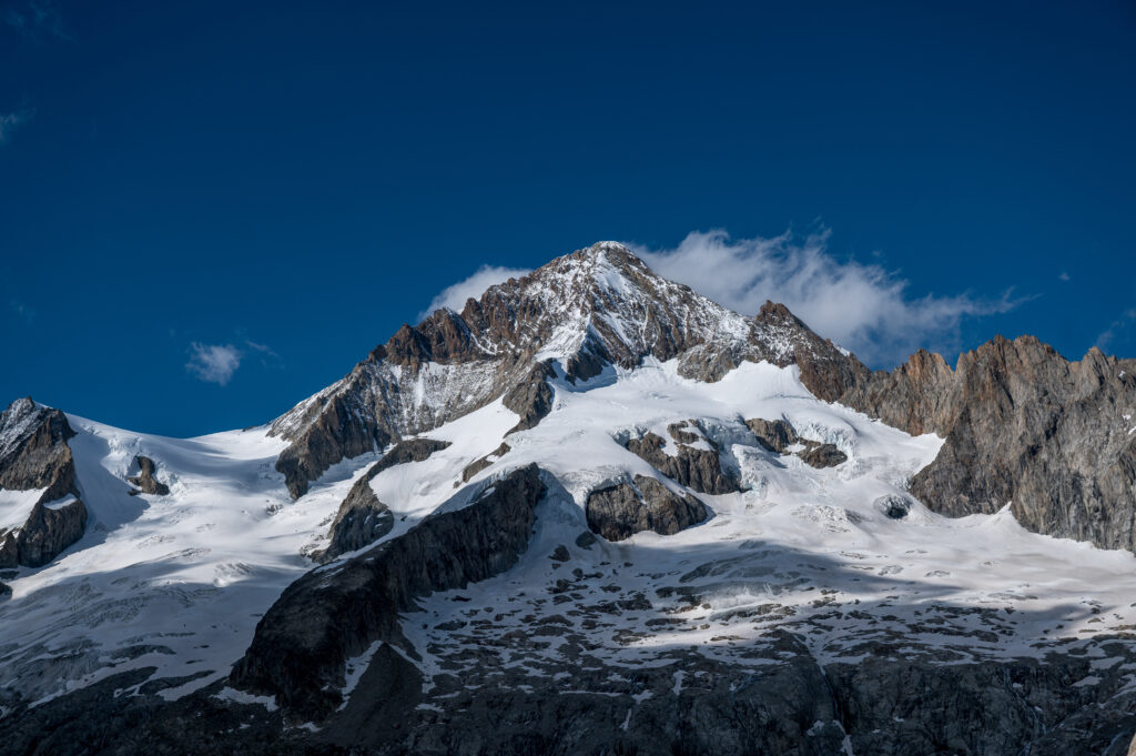 The mountain holds two claims that define its character. First, it is “often thought to command the finest of all the panoramic views from Alpine summits” (Wikipedia, quoting established mountaineering tradition) — a view that encompasses the entire Bernese Alps chain northward (Eiger, Mönch, Jungfrau, Finsteraarhorn), the Pennine Alps southward (Matterhorn, Weisshorn, Dom, Monte Rosa), and Mont Blanc to the west. Second, it carries the reputation of being the coldest mountain in the entire Alps. Both claims are confirmed by Francis Fox Tuckett who, on his first ascent in 1859, took barometric measurements at the summit and specifically noted the icy temperature and ferocious wind that nearly knocked his party from the ridge.
